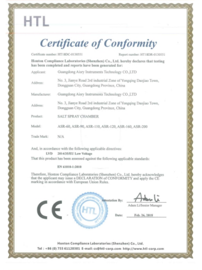 鹽霧試驗機CE認證